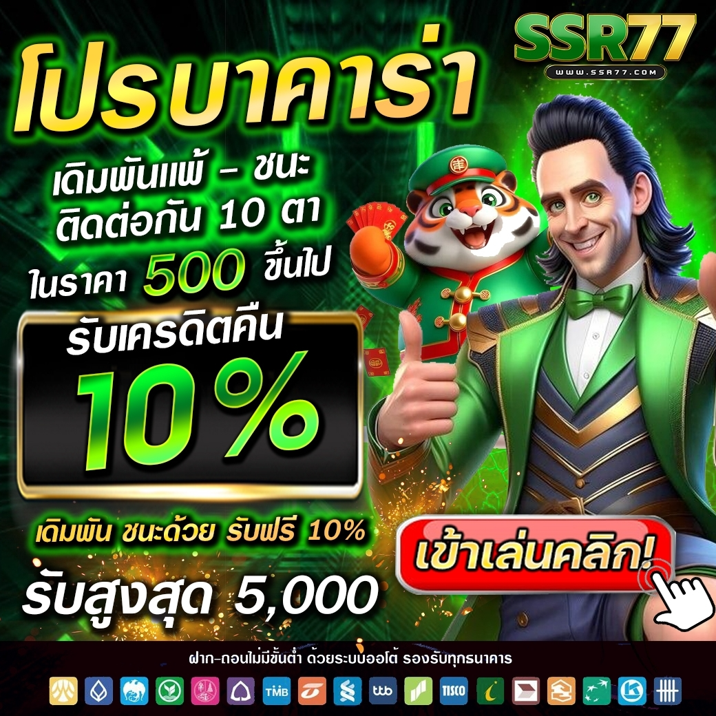 SSR77 เป็นเว็บไซต์พนันออนไลน์ที่รวบรวมเกมเดิมพันหลากหลายรูปแบบไว้ในที่เดียว ด้วยระบบที่ทันสมัยและการบริการตลอด 24 ชั่วโมง ทำให้ผู้เล่นสามารถเข้าถึงความบันเทิงได้ทุกที่ทุกเวลา ไม่ว่าจะเป็นคาสิโนสด สล็อตออนไลน์ การพนันกีฬา หรือเกมไพ่ต่างๆ โดดเด่นด้วยระบบฝาก-ถอนอัตโนมัติที่รวดเร็ว รองรับธุรกรรมผ่านธนาคารชั้นนำและวอลเล็ตดิจิทัล พร้อมมาตรฐานความปลอดภัยระดับสากลในการปกป้องข้อมูลส่วนบุคคลของสมาชิก นำเสนอโปรโมชั่นและสิทธิพิเศษมากมายสำหรับทั้งสมาชิกใหม่และสมาชิกประจำ เพื่อเพิ่มโอกาสในการทำกำไรและสร้างความคุ้มค่าให้กับผู้เล่นทุกระดับ